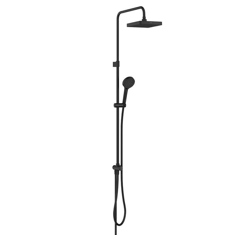 Artema Base Square A4591136 Duş Kolonu, geniş tepe duşu ve el duşu kombinasyonu ile banyolarda konforlu bir duş deneyimi sunar. Teleskopik yapısı ve yönlendirici sistemi sayesinde kullanım kolaylığı sağlarken, mat siyah tasarımı ile modern ve güçlü bir görünüm oluşturur.