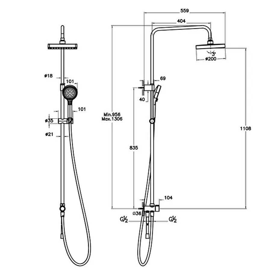 - 200x200 mm tepe duş başlığı ile geniş ve konforlu duş deneyimi sunar