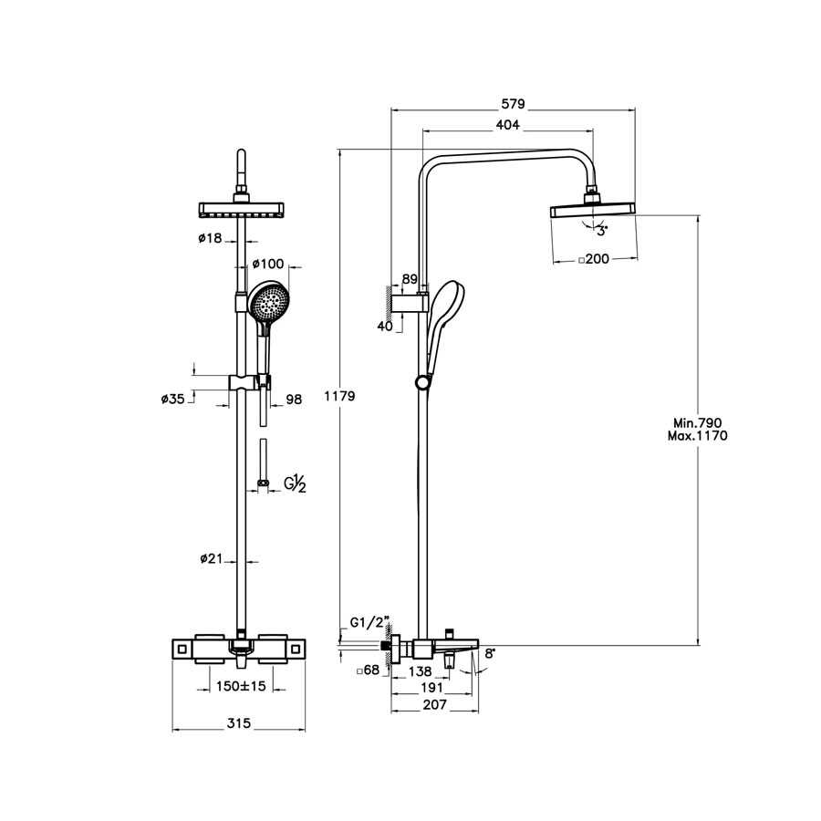 Artema Base Square A4730436 200 Duş Kolonu Ve Termostatik Banyo Bataryası Sistemi, Mat Siyah - 1Artema Base Square A4730436 200 Duş Kolonu Ve Termostatik Banyo Bataryası Sistemi, Mat Siyah - 2