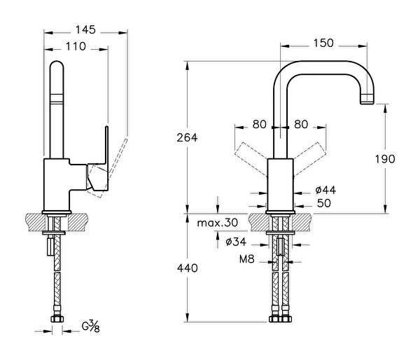 Çıkış ucu yüksekliği 190 mm ’dir.