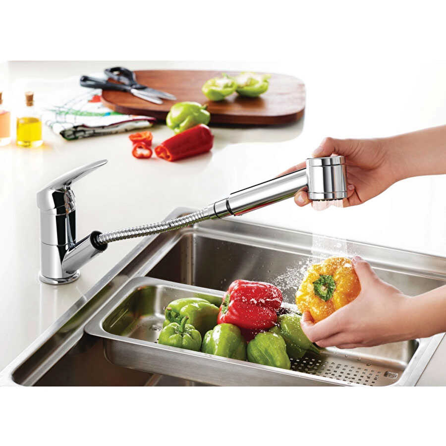 - Pull-out Duo Spray : Mutfak bataryasının, el yakmayan el duşu kolayca ileri doğru çekilip eviye etrafında konforlu kullanım sağlayarak çalışma alanını genişletir. Çift akış fonksiyonu normal ve spray akış çeşitleriyle ihtiyaca yönelik yıkama sağlar.