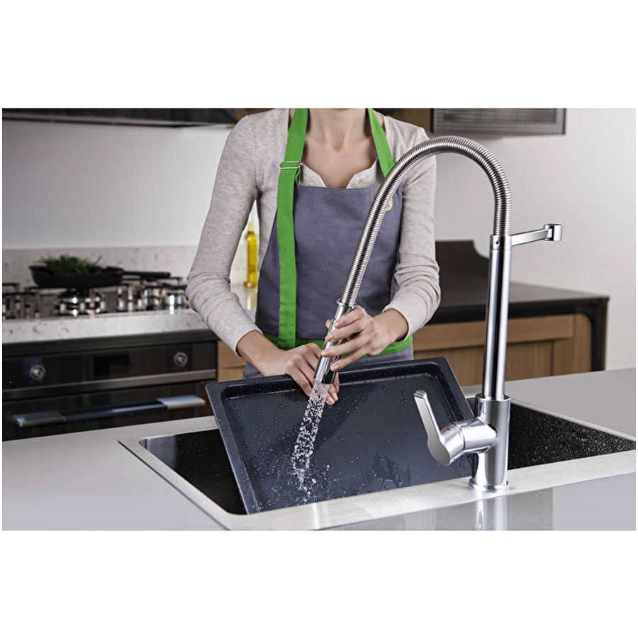 Ev mutfaklarında ve yoğun kullanım gerektiren alanlarda eviye bataryası olarak kullanıma uygundur. Yüksek ve profesyonel tasarımı sayesinde geniş hacimli yıkama işlemlerinde konfor sağlar.