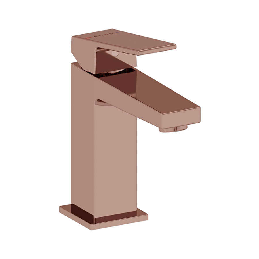 Artema A4372074 Minimax Square lavabo bataryası, kare formu ve soft bakır yüzeyi ile banyoda modern görünüm oluşur. Üstten kumandalıdır.