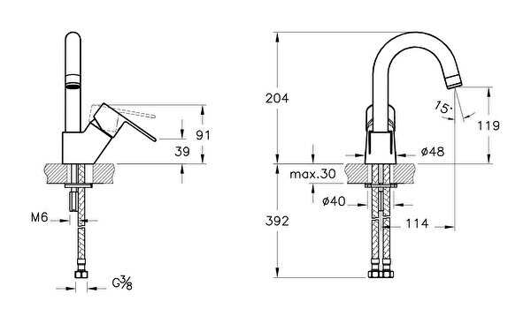 Çıkış ucu yüksekliği 119 mm ’dir.