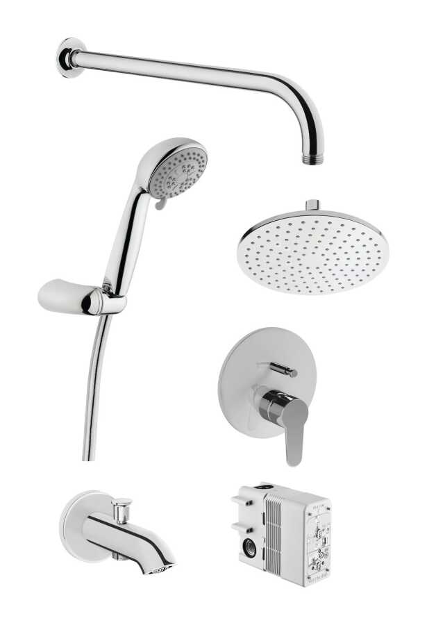 Ankastre banyo bataryası (sıva üstü grubu) (A42589) Ankastre banyo bataryası (sıva altı grubu) (A41949) Çıkış ucu (el duşu çıkışlı) (A42607) Compact 3F el duşu takımı (A45694) Rain L duş başlığı (A45708STA) Duvardan dirsek (A45652).