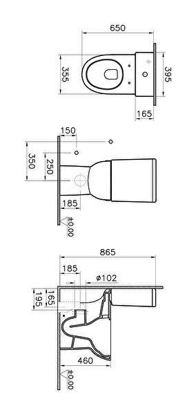 VitrA Conforma Takım klozet 5817L003-0088 Rim-ex - arkası açık - özel ihtiyaç - 65 cm - taharet borulu - beyaz