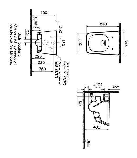 Kanalsız gizli montaj. Klozet kapağı ürüne dahil değildir. Klozet kapağı dahil takım için tıklayınız.