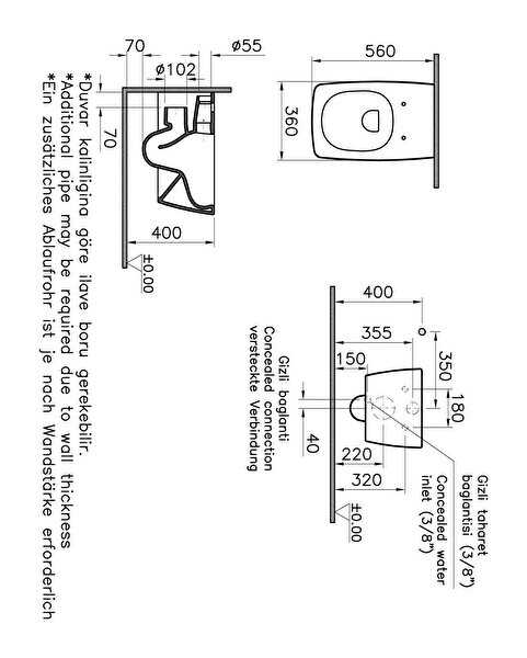 Asma Klozetler için Duvar Önü Rezervuarlar