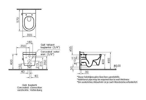 Klozet kapağı ve gömme rezervuar dahil set için tıklayınız.