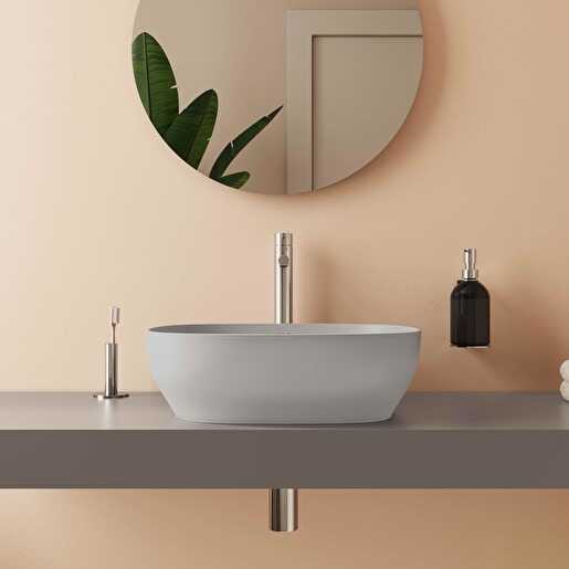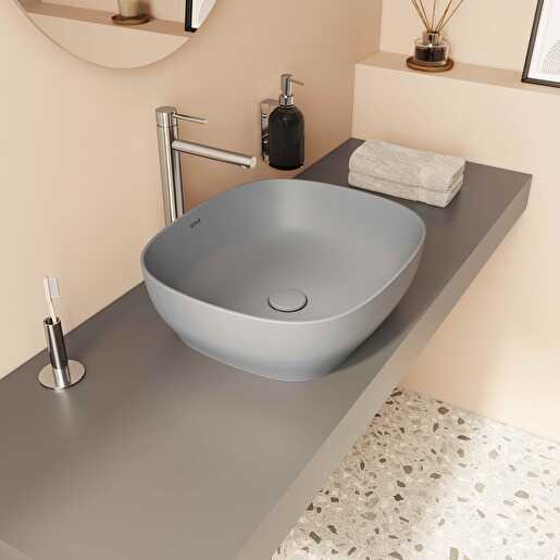 VitrA Plural Çanak lavabo 7810B420-0016 Oval - kompakt - 45x38 cm - armatür deliksiz - su taşma deliksiz - Clean - mat bej