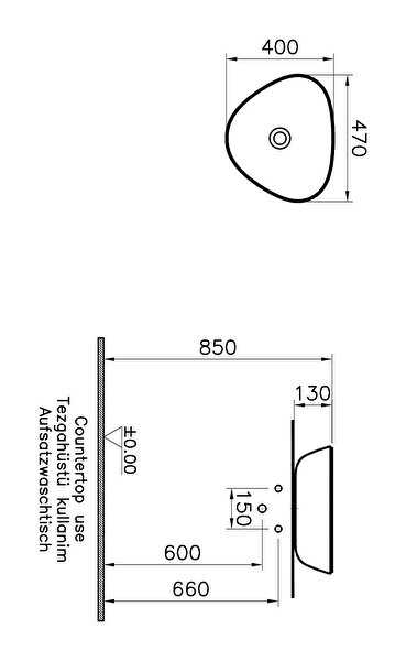 VitrA İstanbul Çanak lavabo 4280B470-0016 Yuvarlak - 60x55 cm - armatür deliksiz - su taşma deliksiz - Clean - siyah