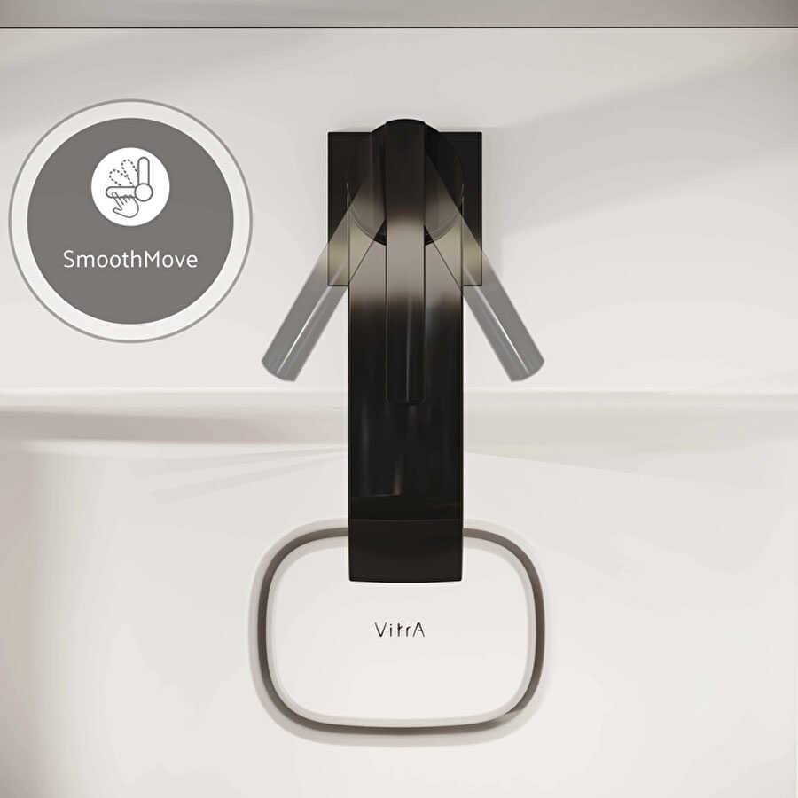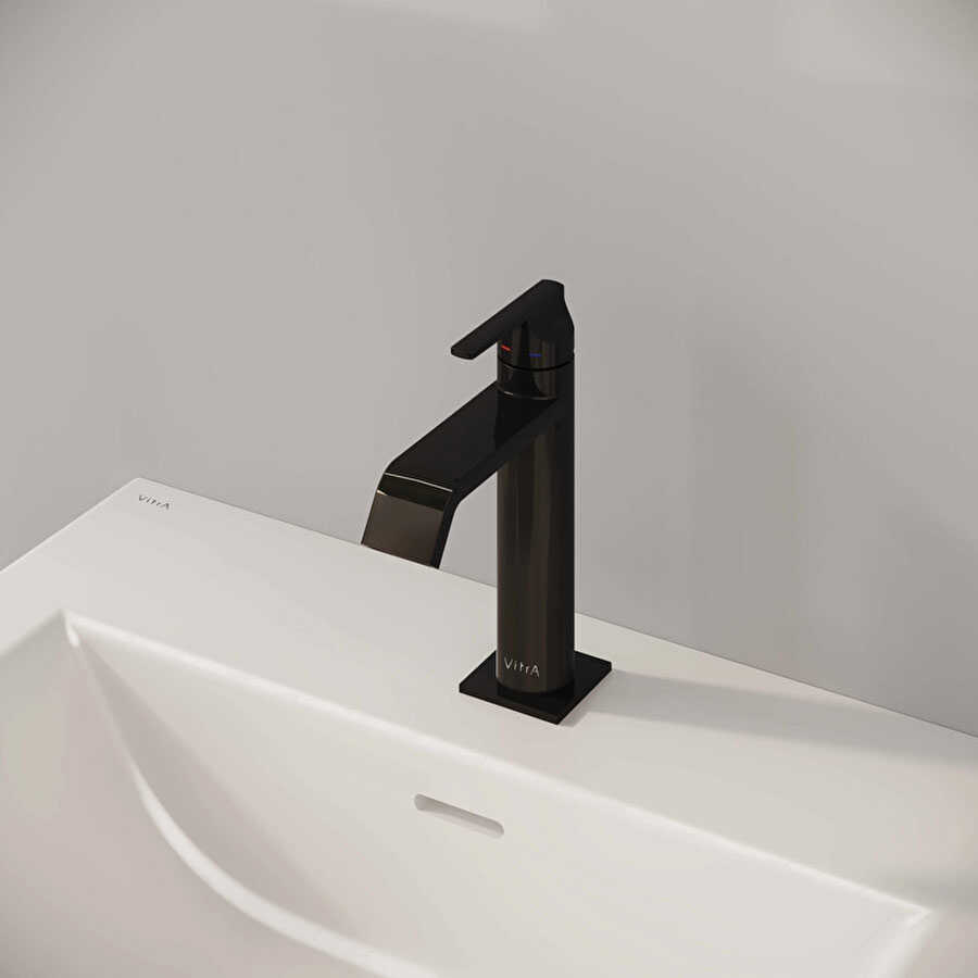 VitrA Suit Lavabo Bataryası A4281639 Parlak Siyah , yuvalak formu ve Parlak Siyah yüzeyi ile banyoda modern görünüm oluşur. Üstten kumandalıdır.