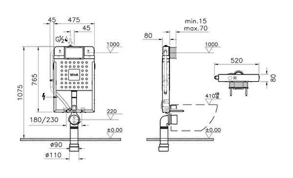 Özel ayakları sayesinde duvar kalınlığı minimize edilmiştir.