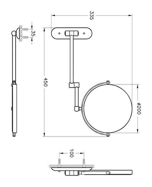 Normal ve 2x büyüteçli çift yüzeyli ayna Krom görünümlü paslanmaz çelik malzeme.