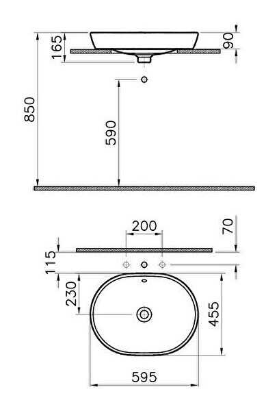 VitrA Geo Çanak lavabo 7426B003-0041 Dikdörtgen - 60x43 cm - tek armatür delikli - su taşma deliksiz - beyaz