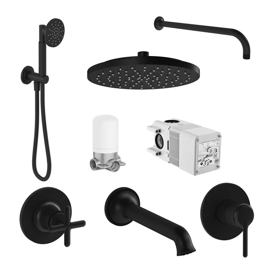 VitrA Origin Classic Ankastre Duş Seti, 8 parça içeriği ile duş alanlarında ihtiyaç duyulan tüm bileşenleri tek pakette sunar. Modern tasarımı, Mat Siyah kaplama yüzeyi ve uyumlu parçaları sayesinde hem estetik hem de fonksiyonel bir çözüm oluşturur.