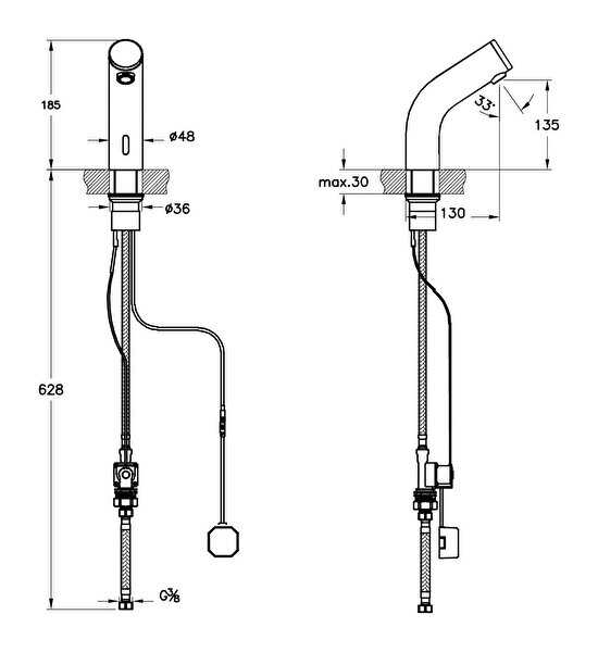 Çıkış ucu yüksekliği 135 mm ’dir.