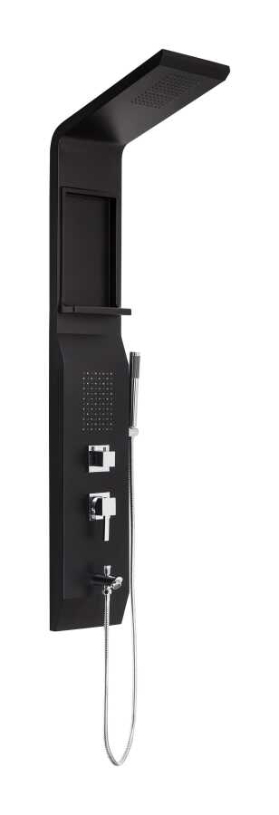 Siyah boyalı alüminyum gövde Kireç kırıcılı ve yağmur akışlı tepe duşu Kireç kırıcılı gizli masaj jetleri Su çıkış ucu Kireç kırıcılı el duşu.